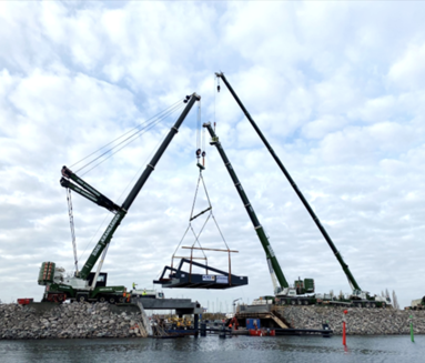 Three steel girders lifted under extreme conditions at Clarion Hotel, CPH Airport