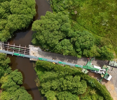 Løsningen kræver dog det helt rigtige bakseudstyr og det leverer BMS til disse projekter, i form af hydrauliske donkrafte til at løfte den nye bro, bakseskinner og specielle computerstyrede "rulleskøjter", som anvendes til at skubbe broen på plads.
