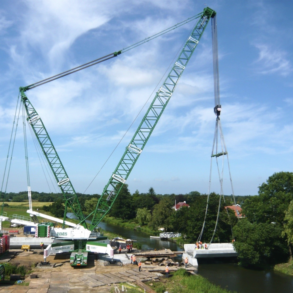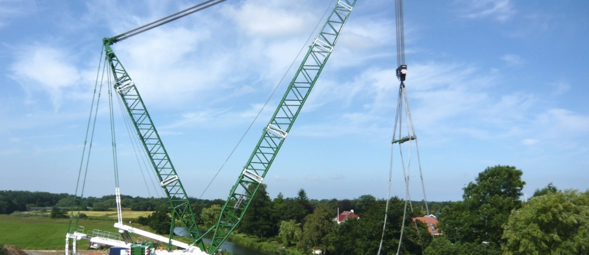 I august 2011 løftede PP Technic tre brosektioner – hver på 260 ton – til brofundamenterne ved Gredstedbro, udført for Aarsleff.