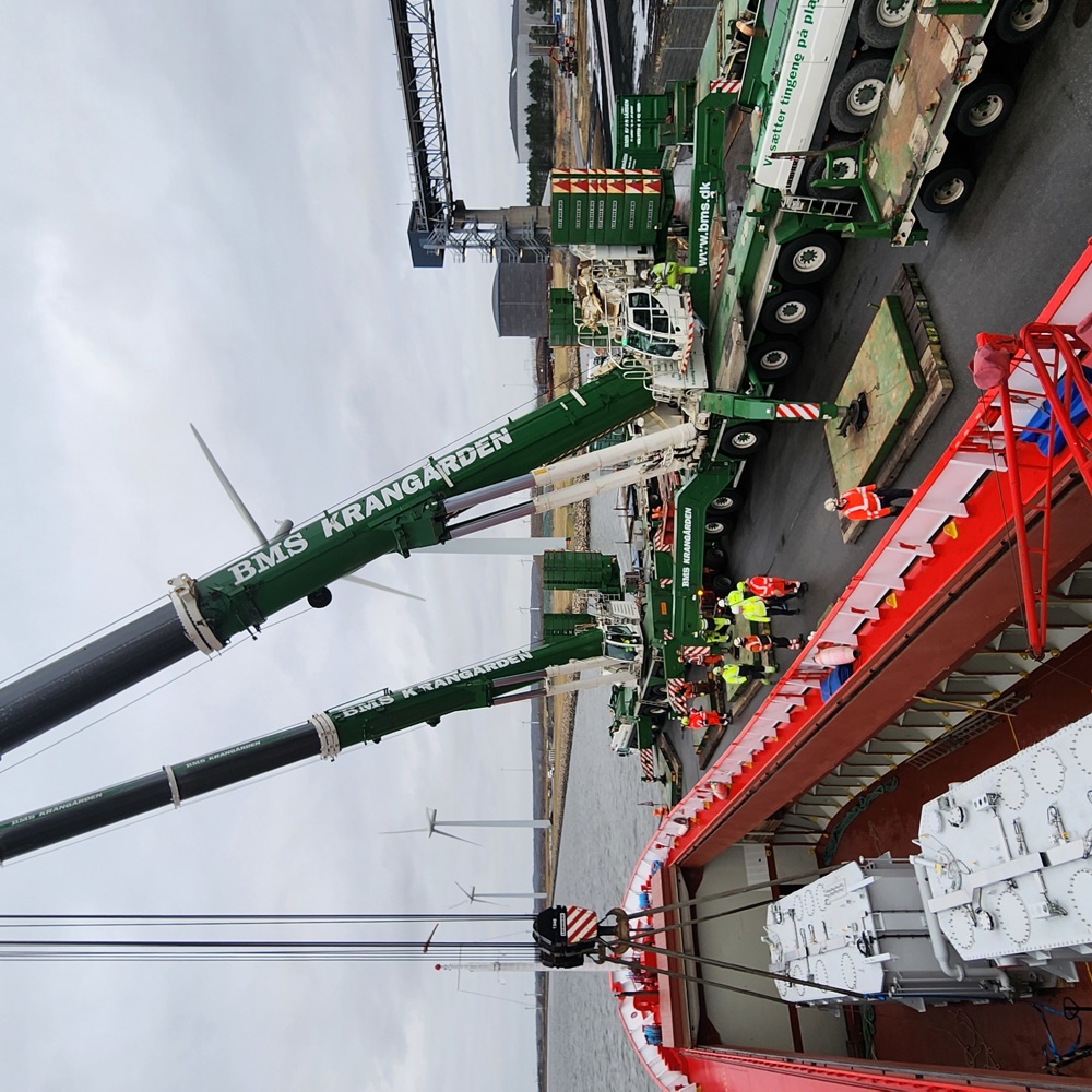 Projektet inkluderede et præcisionsarbejde, hvor transformerne blev løftet fra skib til kaj i et perfekt koordineret samløft. Vores team leverede en effektiv og sikker løsning, der understreger BMS’ ekspertise inden for tunge løft.