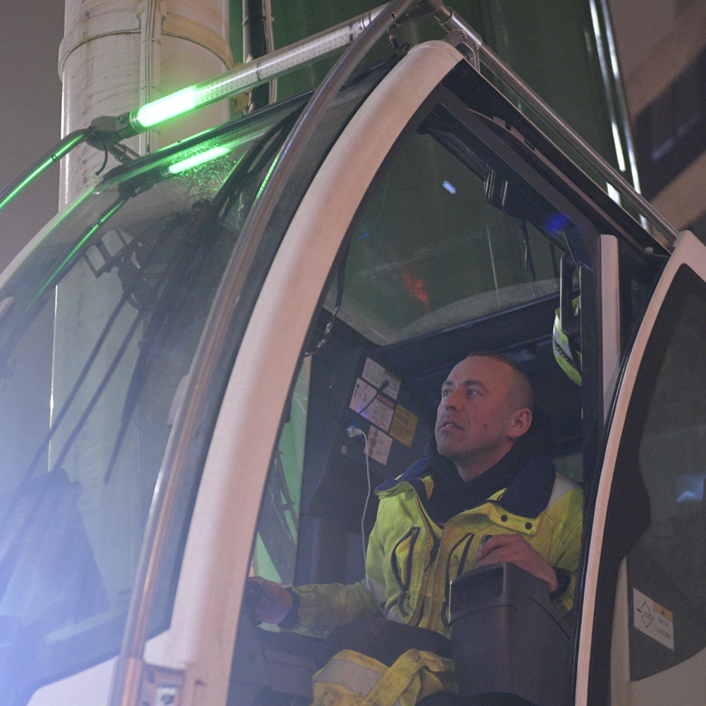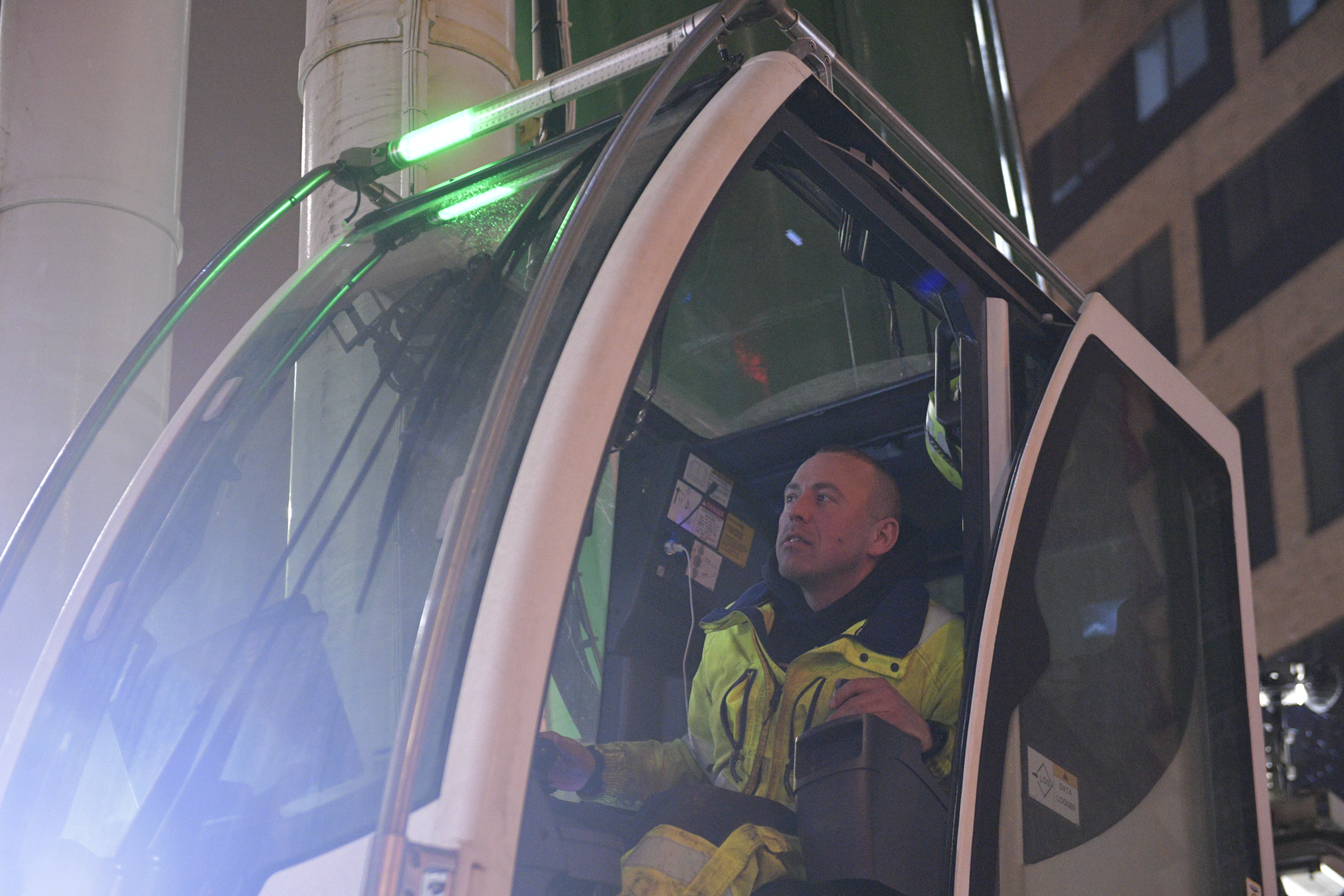 Vejret bød på sne og kulde. Arbejdet foregik sent om aftenen og ind i natten.
