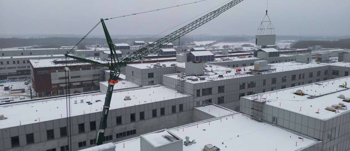 På byggeriet af Nyt OUH i Odense har montering af store roofboxes over elevatorskaktene været en særlig opgave gennem næsten halvandet år.
