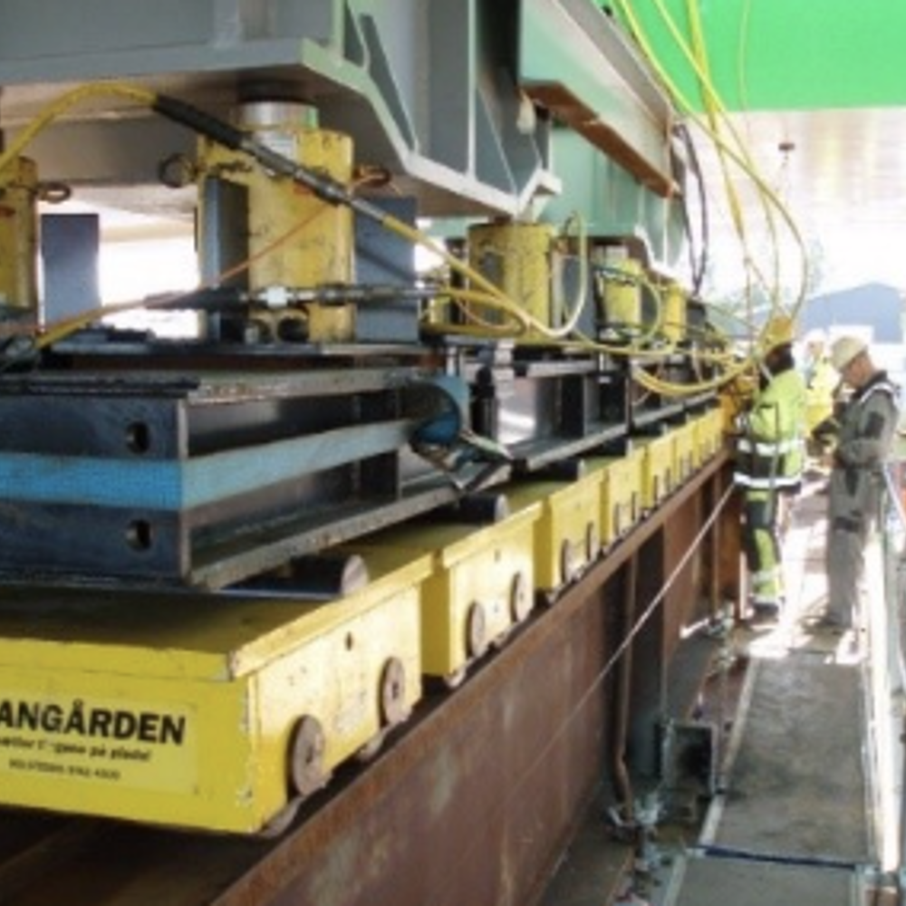 Skubning af bro fra pram til land