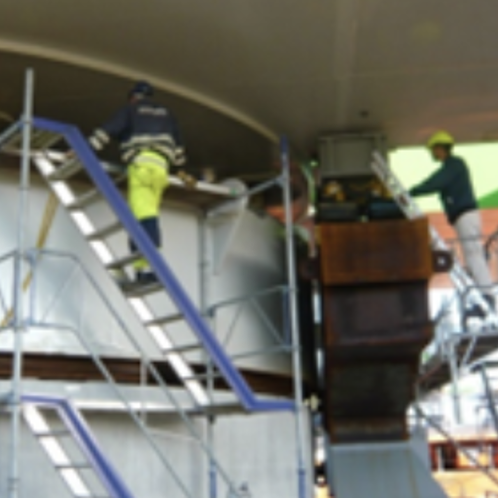 Broen blev skubbet fra pramme ind på land og placeret på fundamenter over et frit spænd på 20 meter.