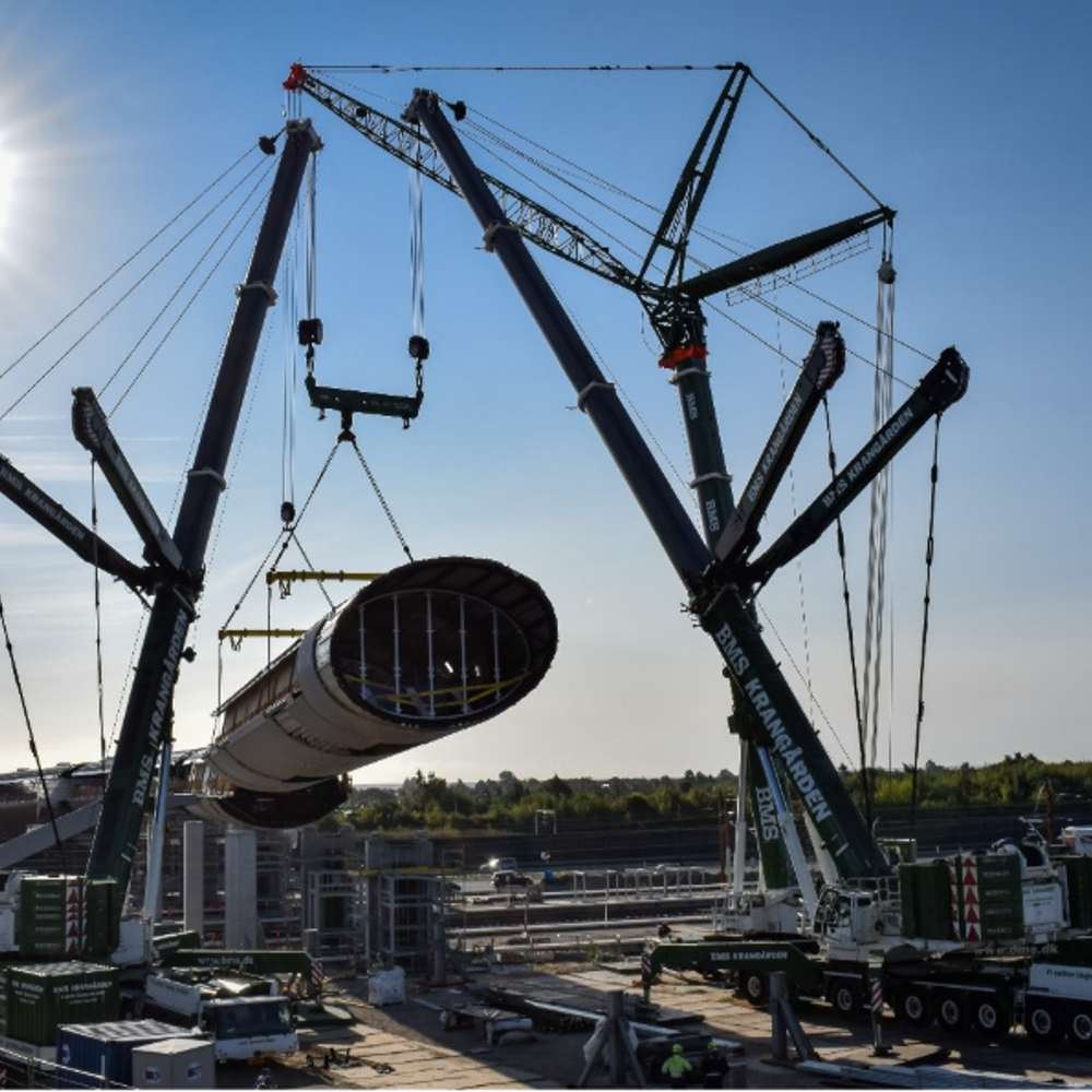 Ud over kranerne leverede BMS den store midlertidige støtte­konstruktion, som blev anvendt under samlings- og svejsearbejdet af tunnelsektionerne.
