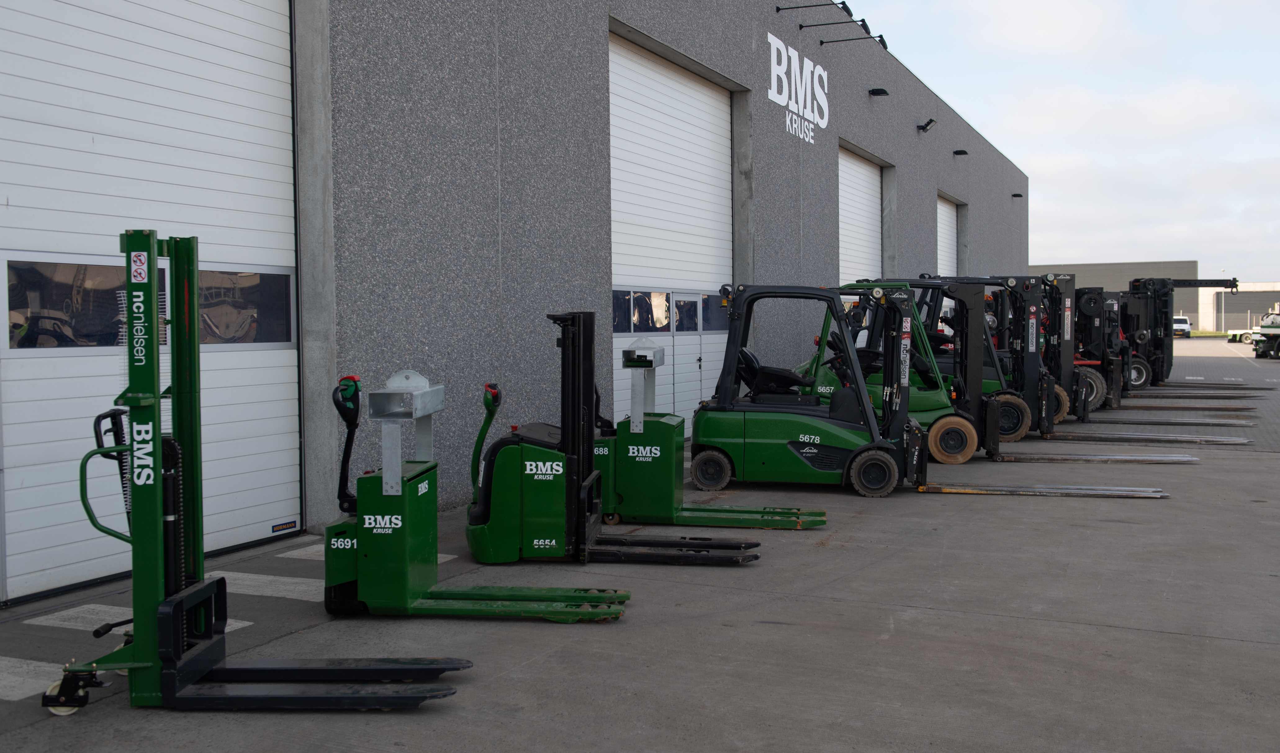 • Gaffeltrucks: BMS har Skandinaviens største flåde af specialbyggede gaffeltrucks. Vi tilbyder alt fra terrængående teletrucks til indendørs el-trucks med løftekapacitet op til 27 tons, der er designet til arbejde i snævre omgivelser. Mange af vores trucks kan monteres med ekstraudstyr, såsom vendbare gafler og hydrauliske kranarme for større fleksibilitet.