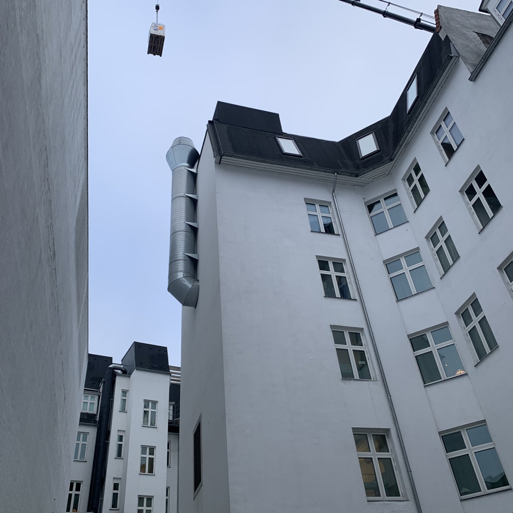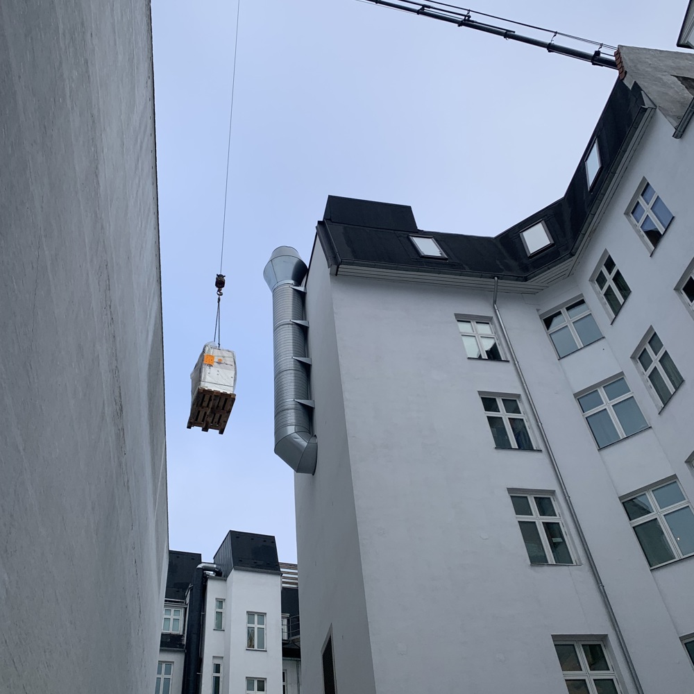 BMS has once again demonstrated its expertise in complex and precise lifts. This time with a 500 kg switch that needed to be hoisted over a 22-meter-high building at Reventlowsgade 4, Copenhagen.