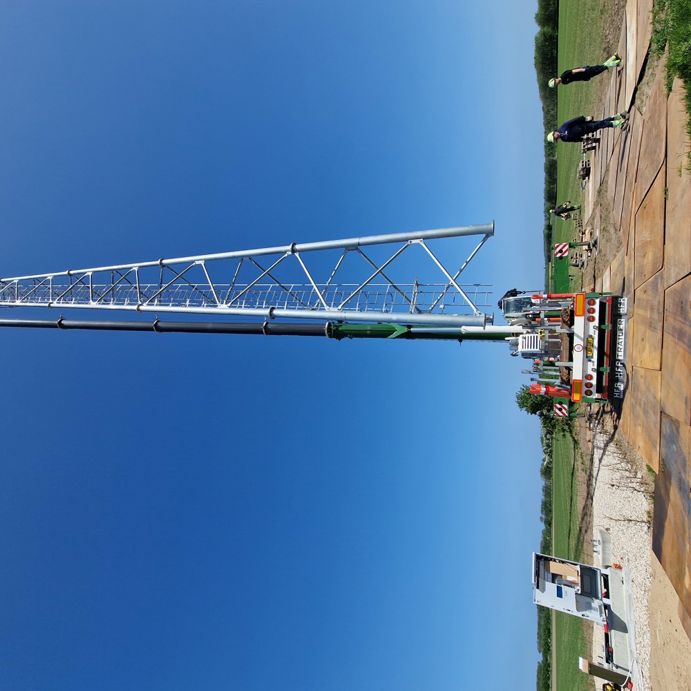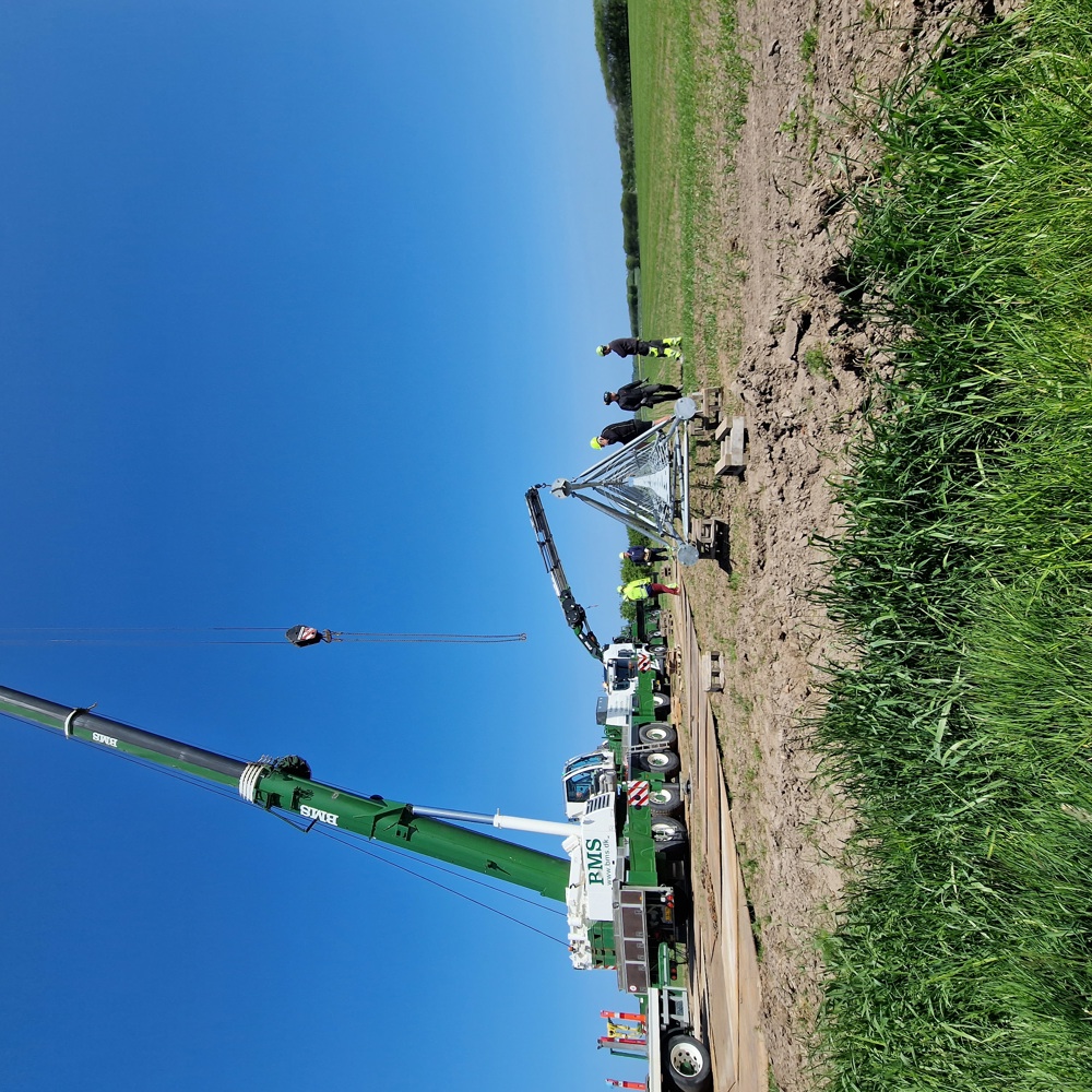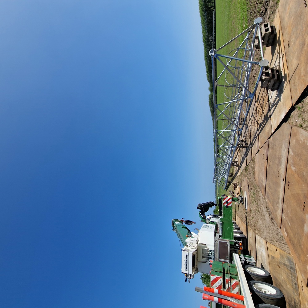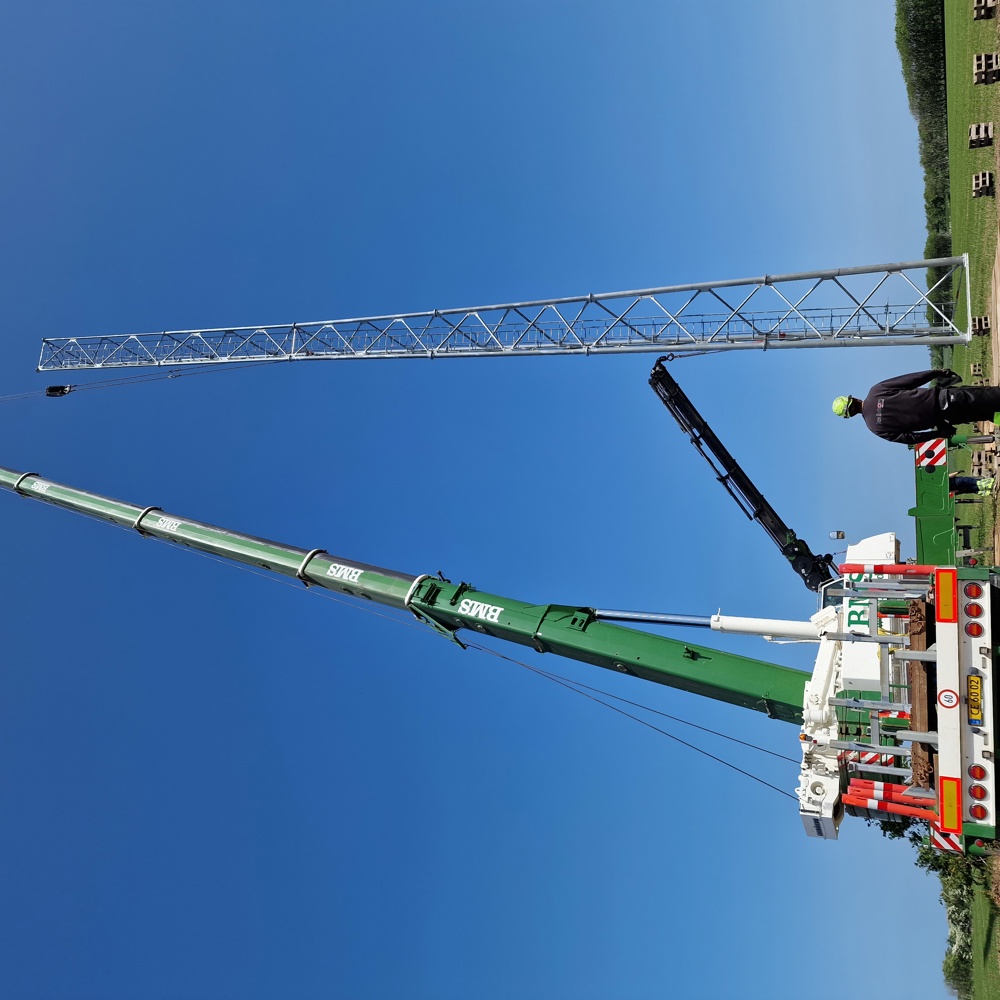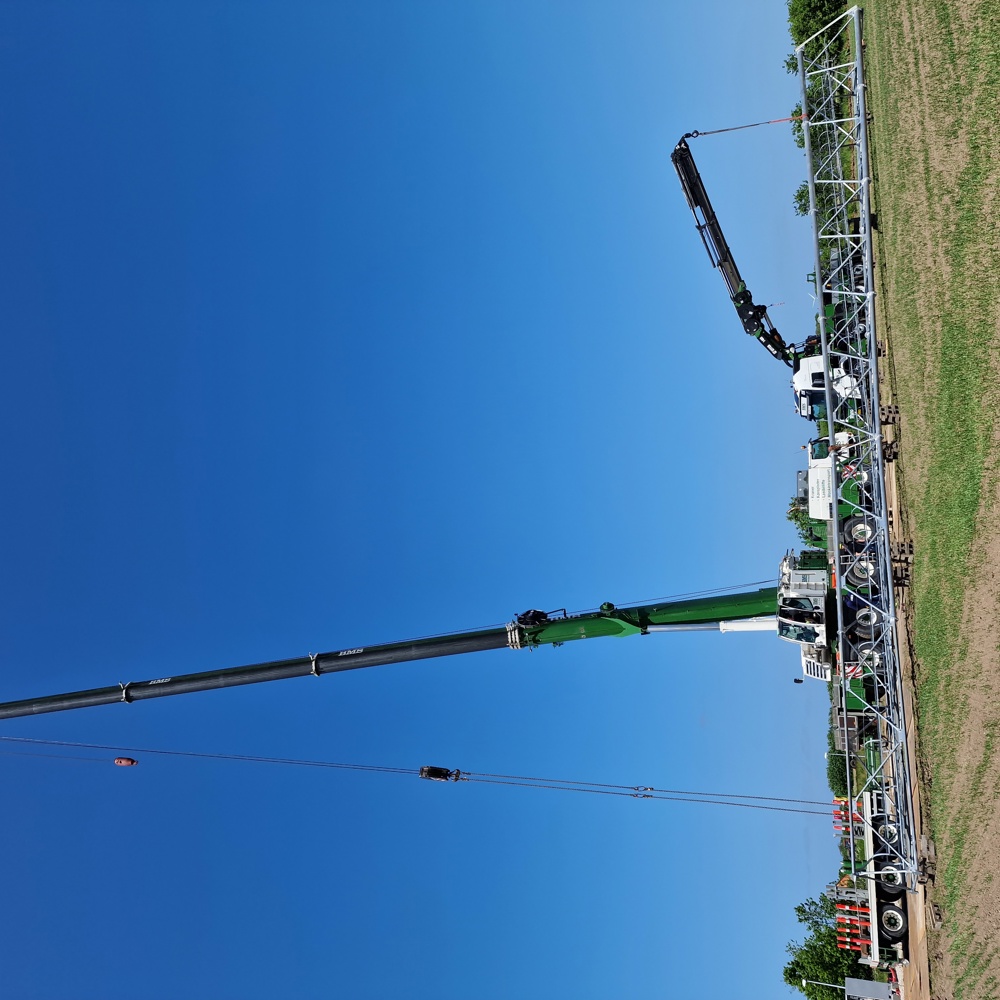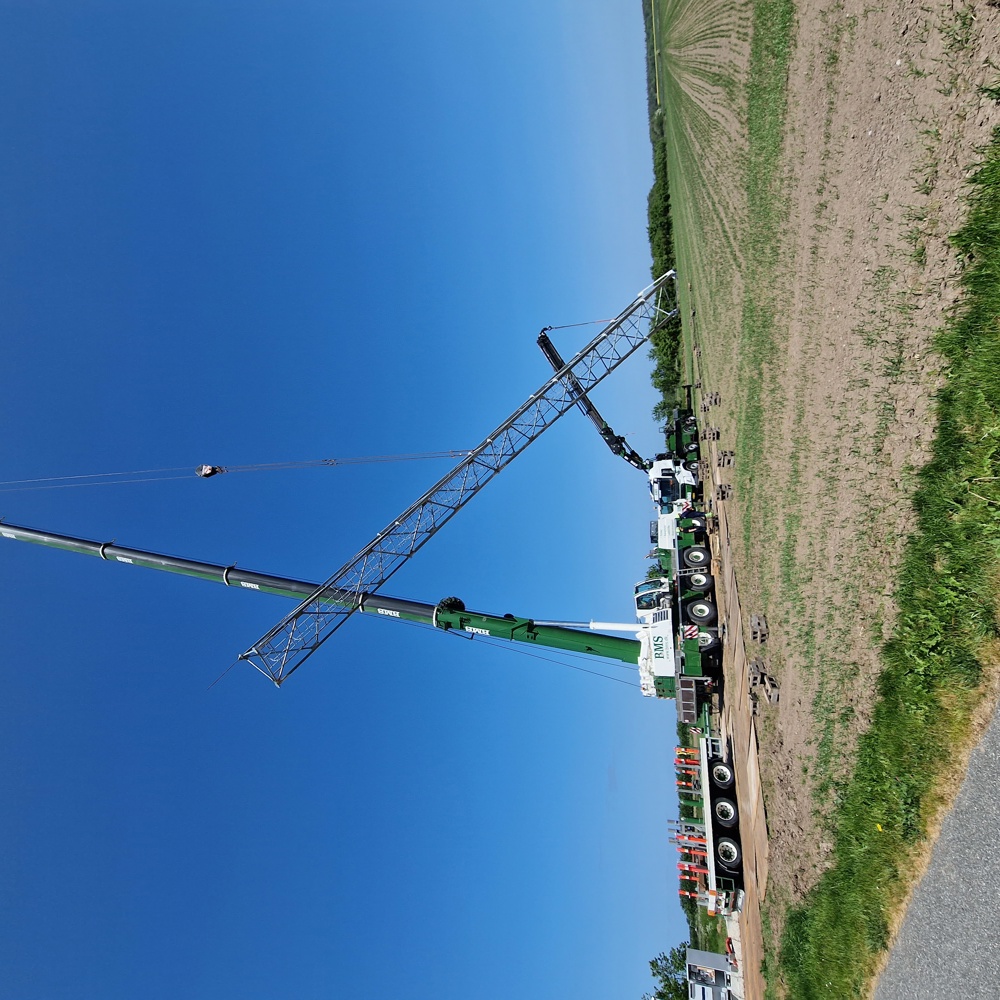 BMS provided a complete solution for the mast hoisting. This included laying out access mats, transporting the mast to the site, and a combined lift between a 130-ton mobile crane and a 140-ton-meter truck-mounted crane as the base crane.