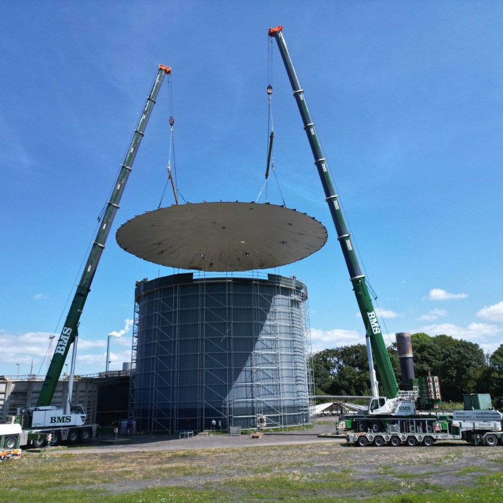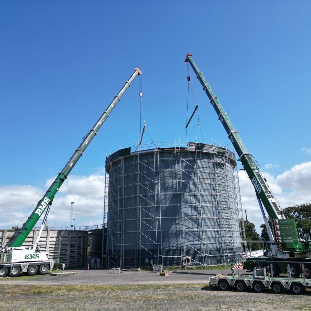 When an older silo roof was due to be replaced at Nordic Sugar Danmark in Nakskov, the durability of the structure was in doubt. BMS therefore consulted with engineers from Nordic Sugar and after some calculations and preliminary meetings, it was decided to reinforce the roof before the lift. At the same time, the lift was carried out with 2 cranes to ensure the best possible control, after which the lift could be carried out safely and efficiently.