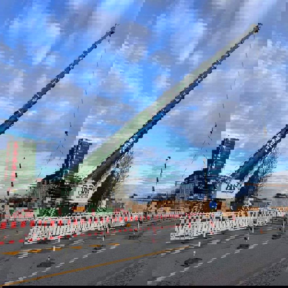 When we had to replace a bridge section on the Swan Mill Bridge, we had to take into account a number of weight restrictions on and by the bridge. It was therefore crucial that both our conductors, the project and engineering department worked closely together to find the right solutions. The result was, among other things,co-lift with 2 of our smaller cranes so we could safely and efficiently complete the task.