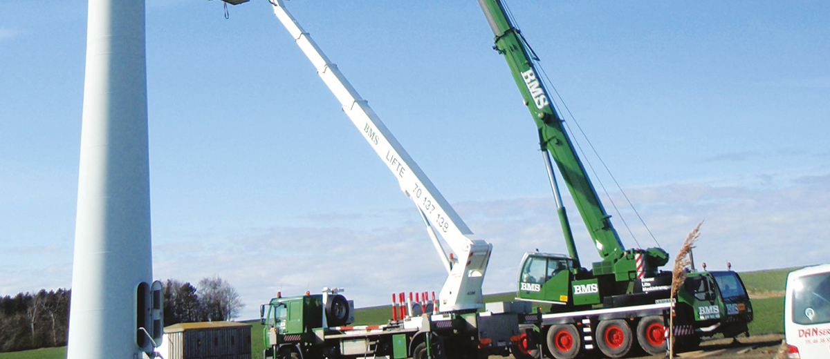 Every now and then the turbines have to be serviced – and that is a task carried out by people and gear from BMS Lift Division. Since the early 1980’s BMS has worked in close co-operation with wind turbine manufacturers, erecting and servicing wind turbines all over the world.