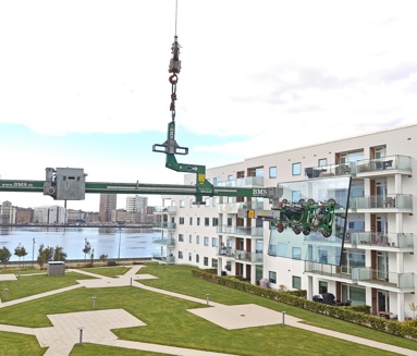 At BMS, we have a large fleet of mobile tower cranes, with a reach of up to 60 metres. The vast majority of our mobile tower cranes are equipped with a battery pack and the option of plug-in, which enables them to be hoisted on pure electricity.